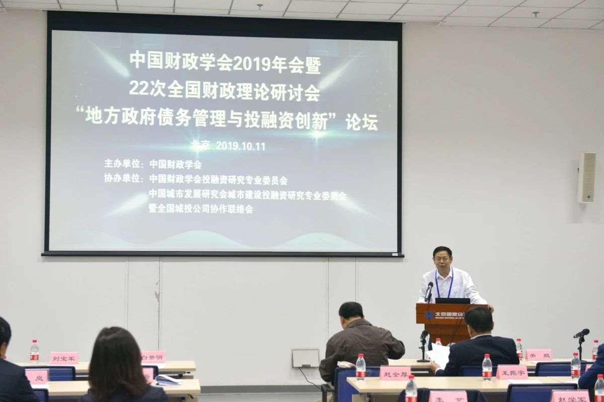 十月京華天高云淡,群賢畢至論道經(jīng)緯。值此舉國歡慶,向祖國70周年盛世華誕獻(xiàn)禮之際,10月11日上午,由中國財政學(xué)會主辦,中國城市發(fā)展研究會城市建設(shè)投融資研究專業(yè)委員會暨全國城投公司協(xié)作聯(lián)絡(luò)會(以下簡稱“全國城投協(xié)會”)、中國財政學(xué)會投融資研究專業(yè)委員會共同協(xié)辦的中國財政學(xué)會2019年會暨理論與政策研討會“地方政府債務(wù)管理與投融資創(chuàng)新”分論壇在北京國家會計學(xué)院隆重召開。來自國家財政部、發(fā)改委、上市機構(gòu)、智庫機構(gòu)、證券金融等領(lǐng)域的十余位專家學(xué)者及業(yè)內(nèi)知名人士近百人參會。本次會議圍繞如何有效改進(jìn)地方政府債務(wù)管理和防范債務(wù)風(fēng)險、促進(jìn)城投轉(zhuǎn)型、推進(jìn)投融資創(chuàng)新工作進(jìn)行了深入研討,與會專家解讀政策,分享經(jīng)驗,開啟了一場思想盛宴。