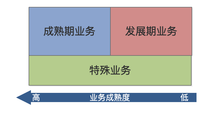 基于上述多元化戰(zhàn)略對于城投公司的現(xiàn)實意義,在市場化轉(zhuǎn)型過程中的城投公司采用多元化戰(zhàn)略勢在必行??梢灶A(yù)見轉(zhuǎn)型必然會帶來一系列問題的出現(xiàn),因此為了對問題進(jìn)行具體分析,將多元化戰(zhàn)略下城投公司的業(yè)務(wù)由業(yè)務(wù)成熟度入手分為成熟期業(yè)務(wù)、發(fā)展期業(yè)務(wù)、特殊業(yè)務(wù)三種,如圖1所示,并結(jié)合實際情況對相應(yīng)的管控問題進(jìn)行分析。